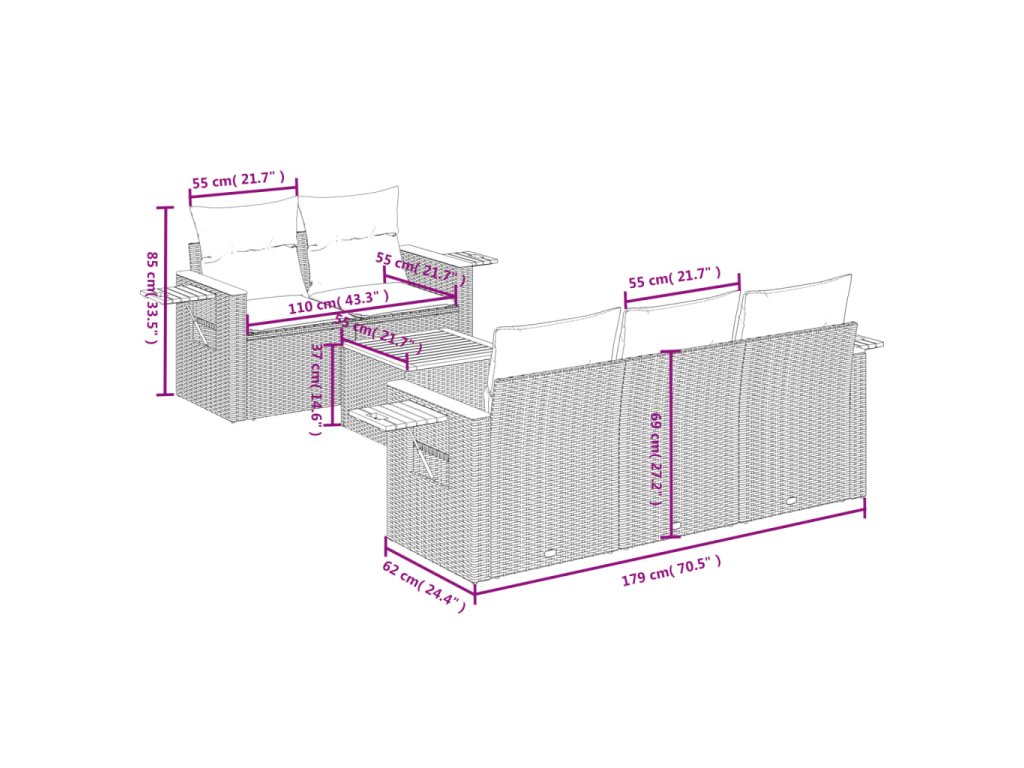6-dielna záhradná súprava pohoviek s vankúšmi čierna polyratan 3226623