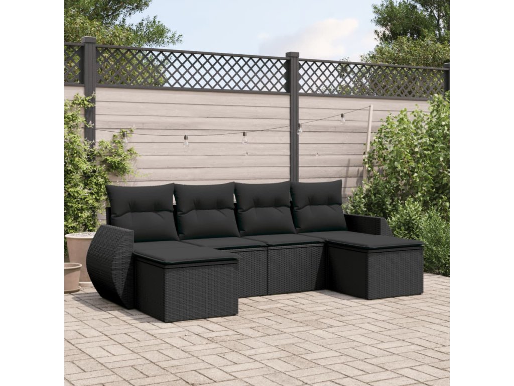 6-dielna záhradná súprava pohoviek s vankúšmi čierna polyratan 3254052