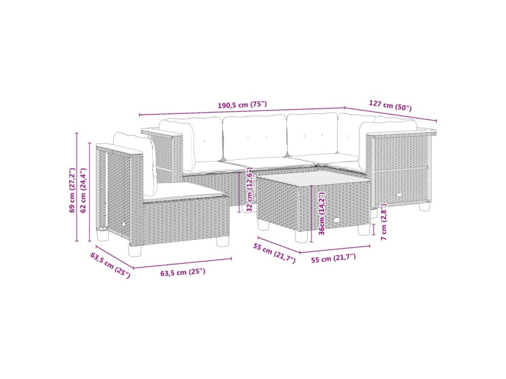 6-dielna záhradná súprava pohoviek s vankúšmi čierna polyratan 3261839
