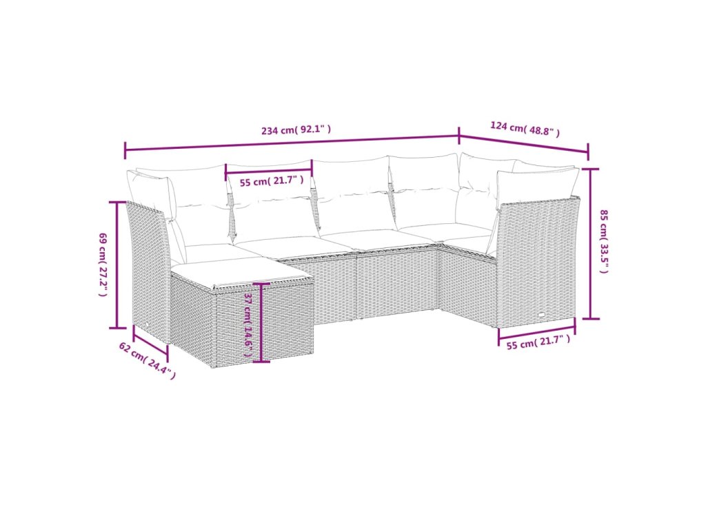 6-dielna záhradná súprava pohoviek s vankúšmi čierna polyratan 3263172