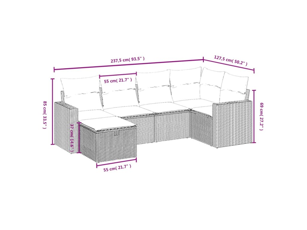 6-dielna záhradná súprava pohoviek s vankúšmi čierna polyratan 3263482