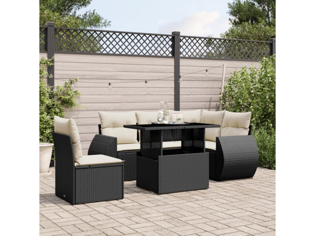 6-dielna záhradná súprava pohoviek s vankúšmi čierna polyratan 3268536