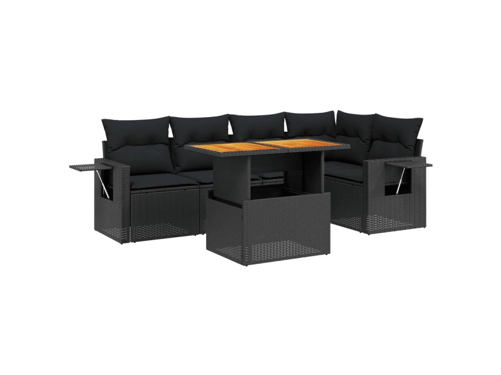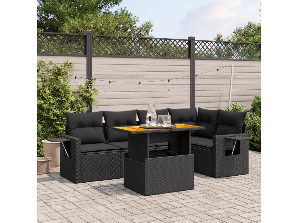 6-dielna záhradná súprava pohoviek s vankúšmi čierna polyratan 3271741