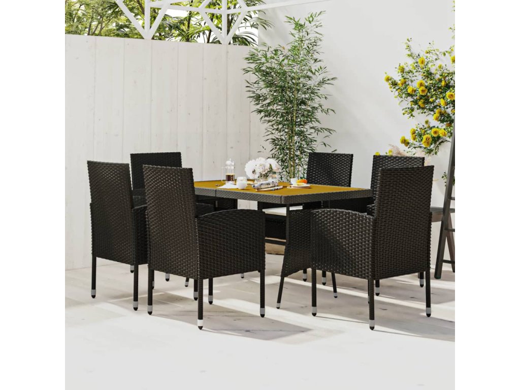 7-dielna vonkajšia jedálenská súprava polyratan čierna 3120100