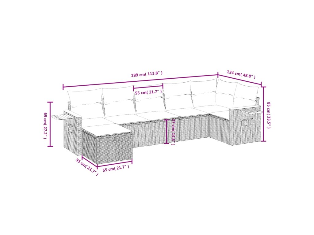 7-dielna záhr. jedálenská sada s vankúšmi mix béžovej polyratan 3265532