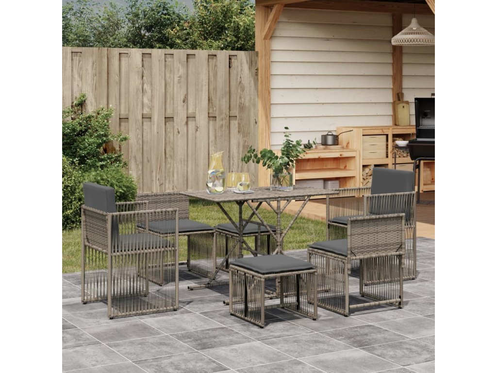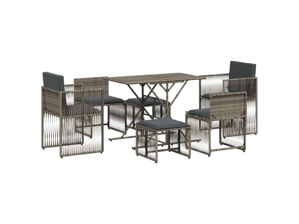 7-dielna záhradná jedálenská sada s podložkami sivá polyratan 369011