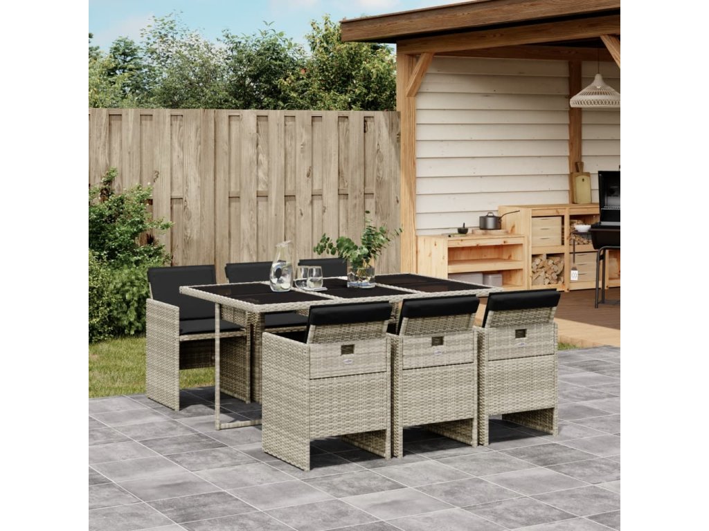 7-dielna záhradná jedálenská sada vankúše bledosivá polyratan 3277678