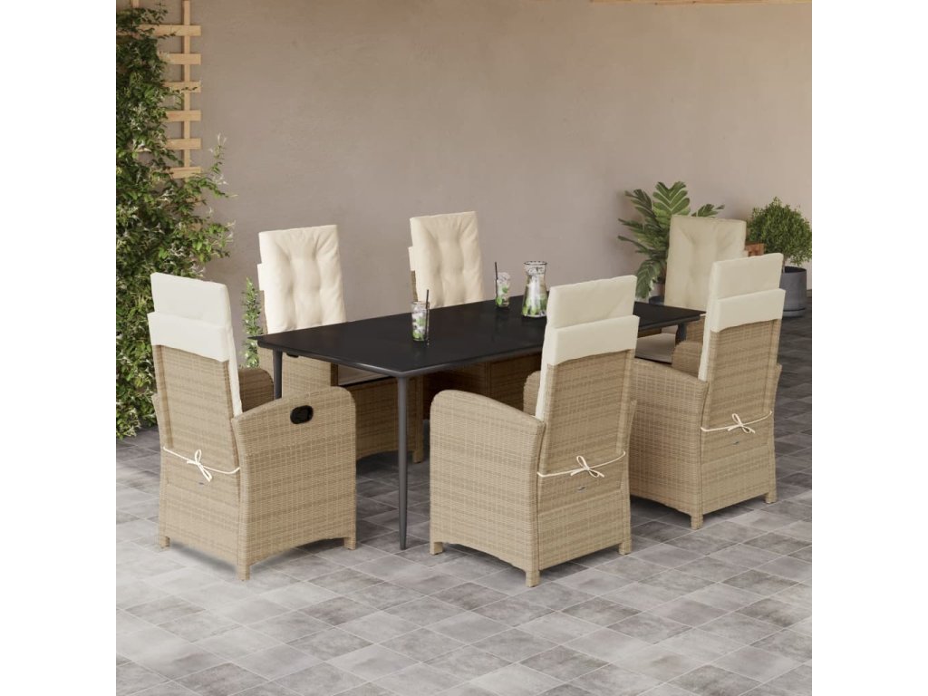 7-dielna záhradná jedálenská súprava a vankúše béžová polyratan 3212377