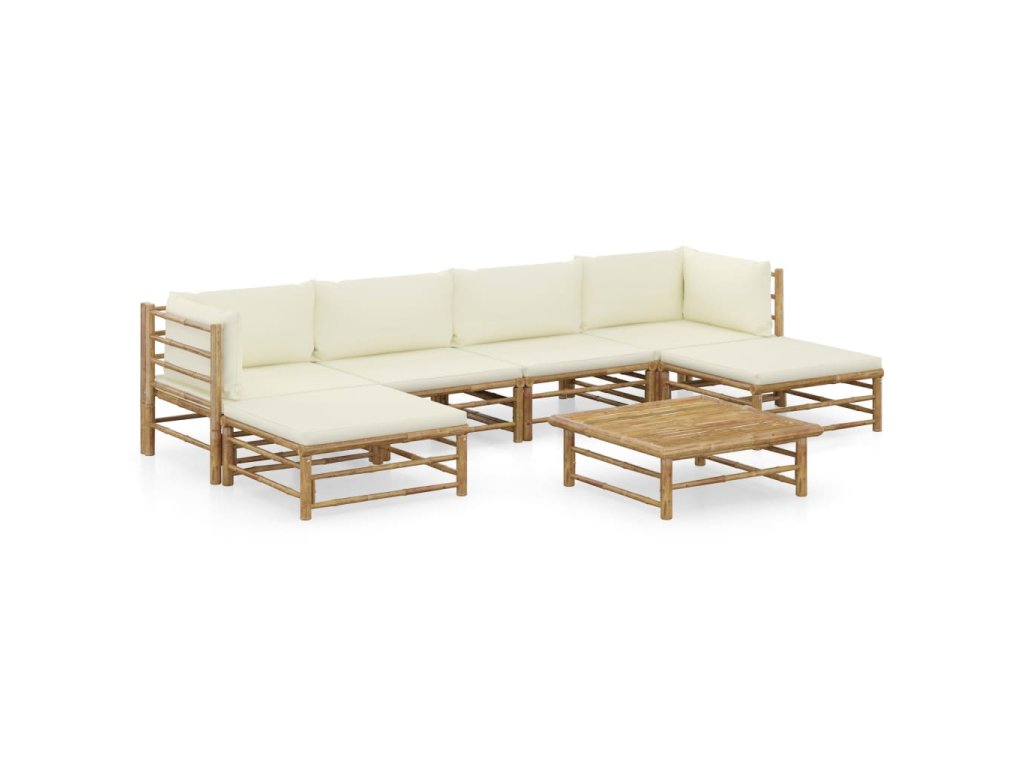 7-dielna záhradná sedacia súprava, krémové podložky, bambus 3058231