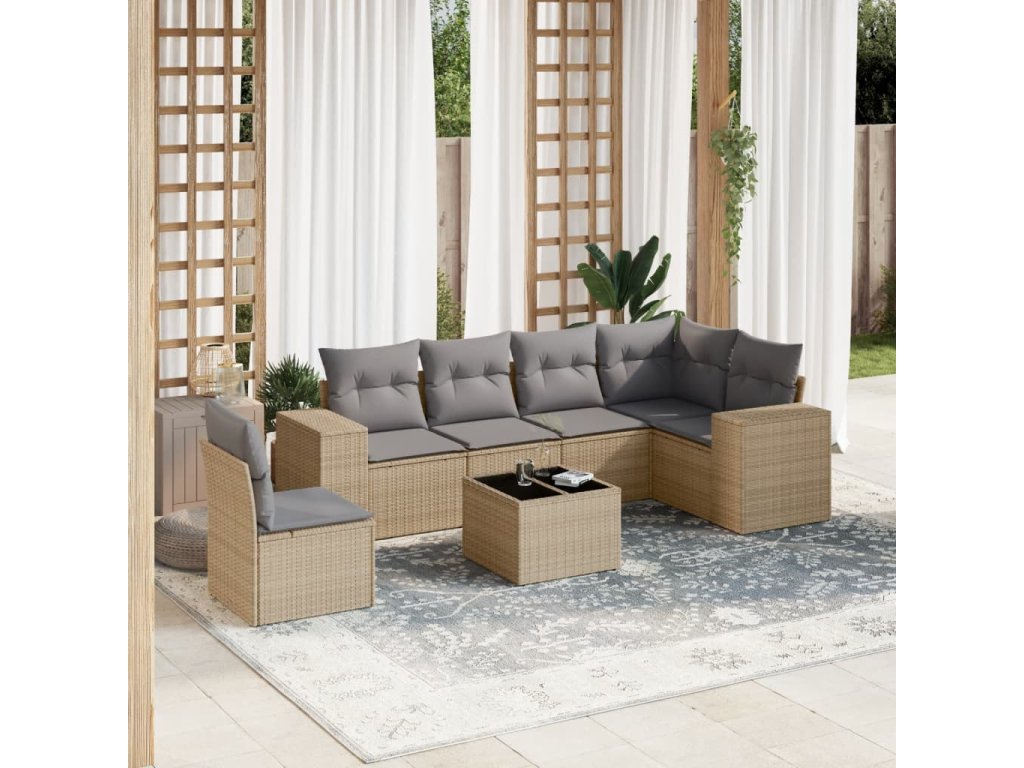7-dielna záhradná sedacia súprava a vankúše béžová polyratan 3254976