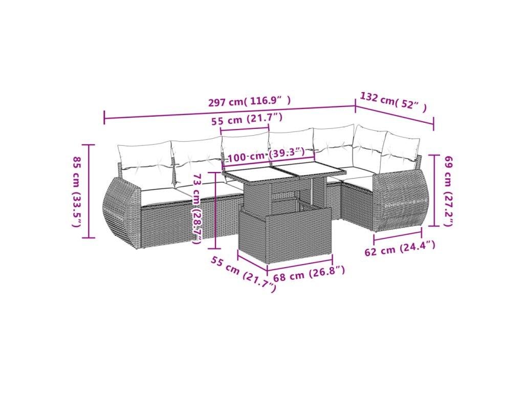 7-dielna záhradná sedacia súprava a vankúše béžová polyratan 3268548