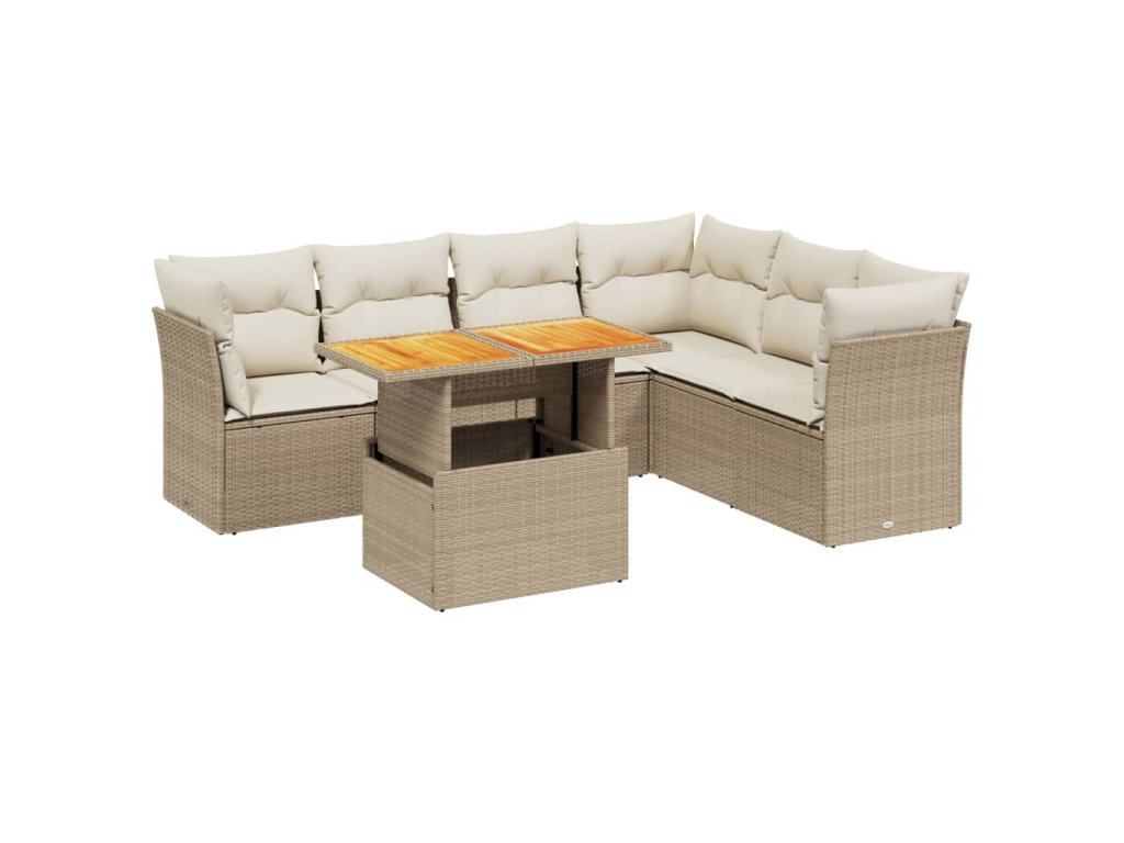 7-dielna záhradná sedacia súprava a vankúše béžová polyratan 3270848
