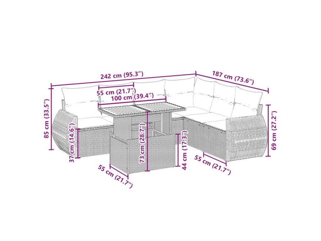 - Modulárny dizajn: Táto súprava vonkajšieho nábytku má modulárny dizajn, vďaka čomu je úplne flexibilná a ľahko sa premiestňuje, takže si môžete vytvoriť prispôsobené usporiadanie vonkajšieho nábytku.