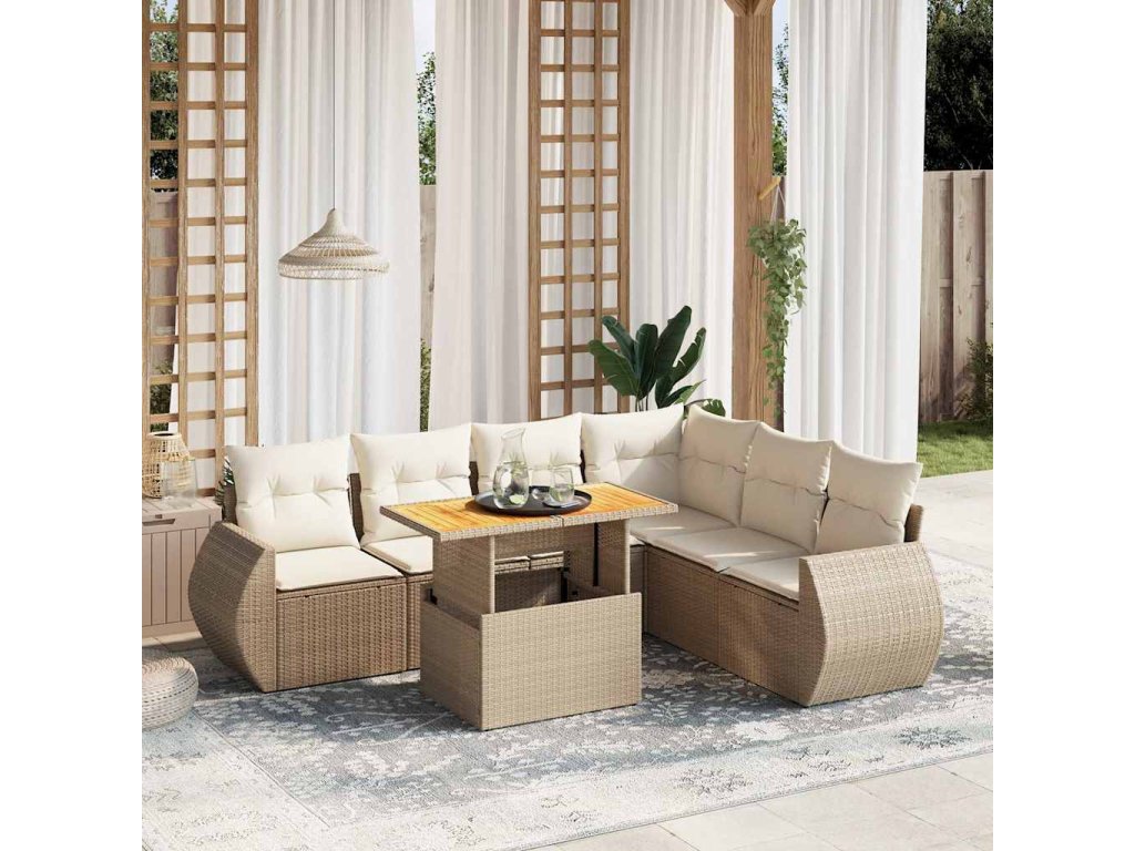 7-dielna záhradná sedacia súprava a vankúše béžová polyratan 3272213