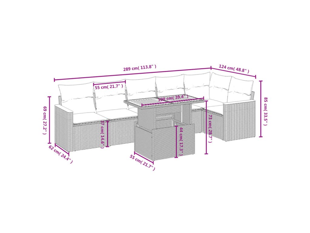 7-dielna záhradná sedacia súprava a vankúše béžová polyratan 3273089