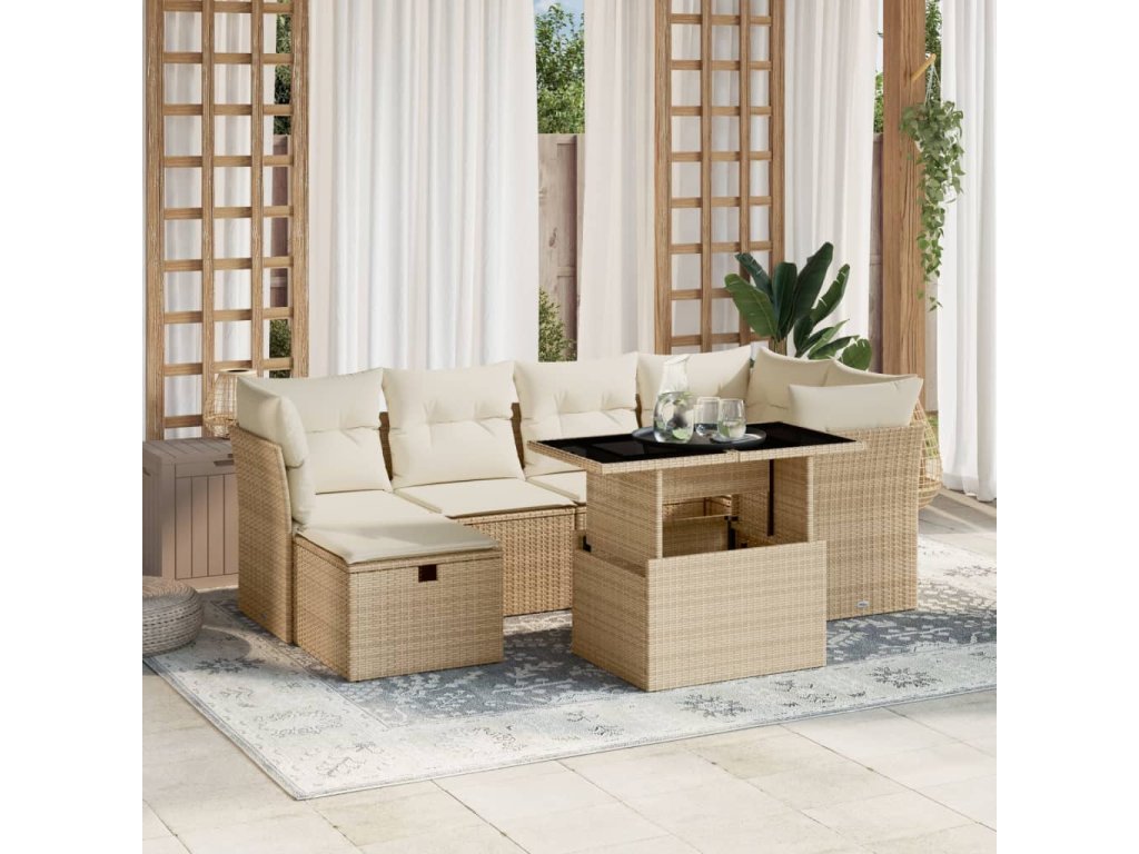 7-dielna záhradná sedacia súprava a vankúše béžová polyratan 3274658
