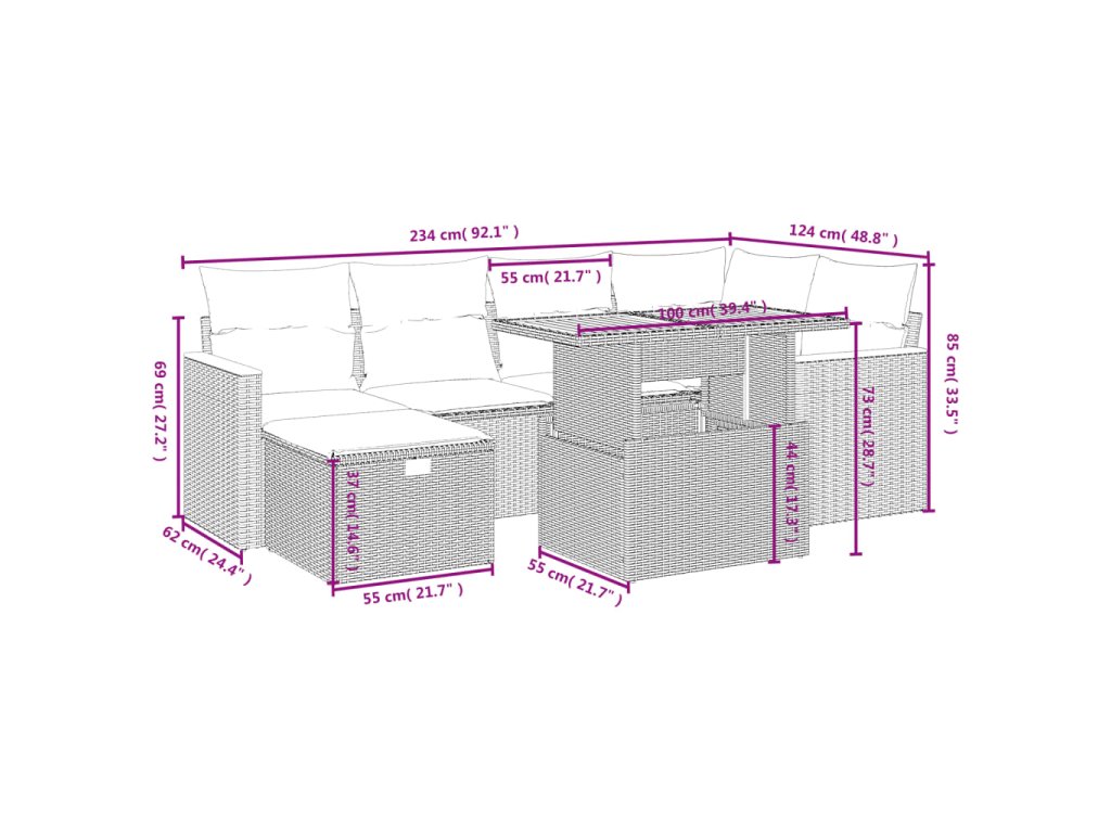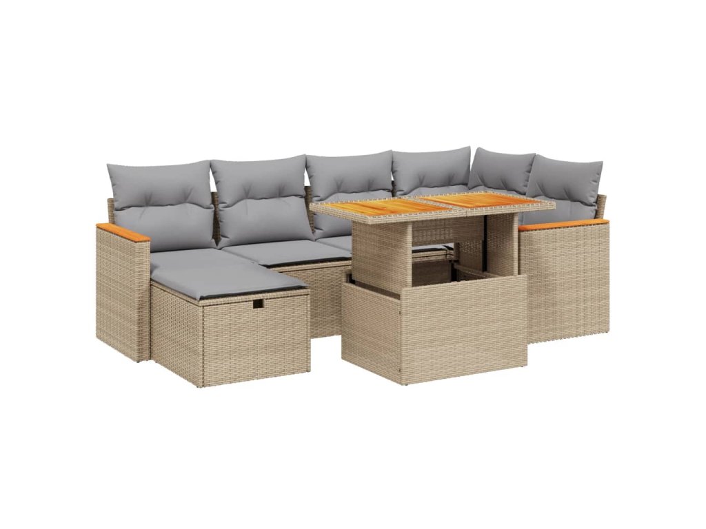 7-dielna záhradná sedacia súprava a vankúše béžová polyratan 3276041