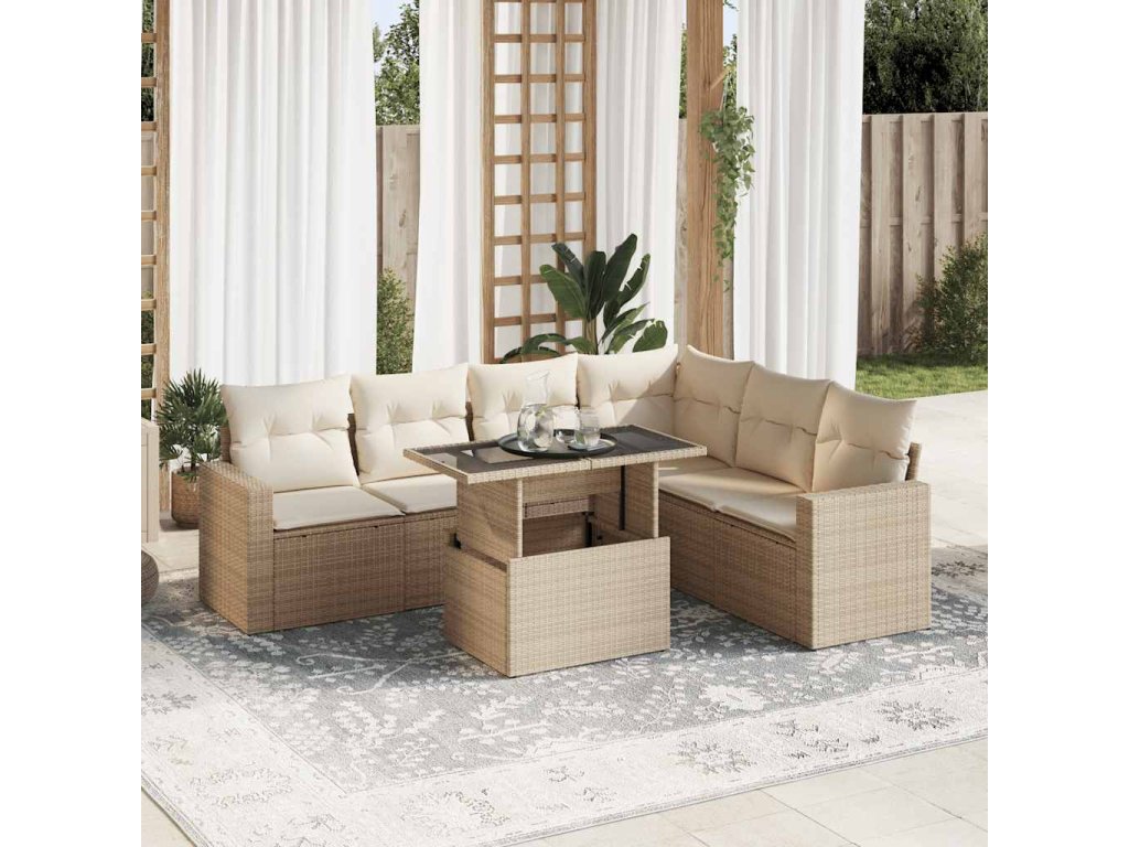 7-dielna záhradná sedacia súprava a vankúše béžová polyratan 3326329