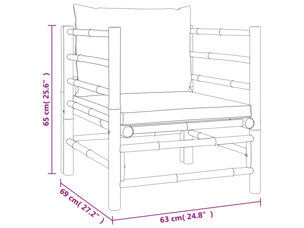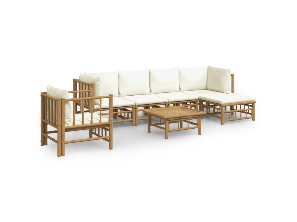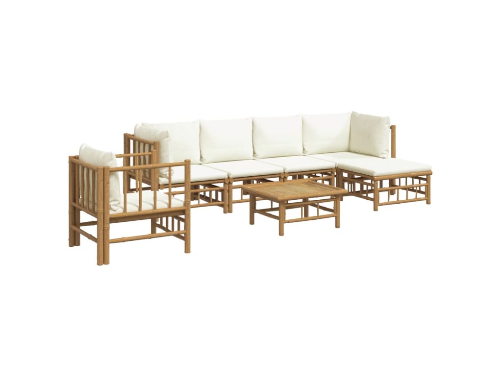 7-dielna záhradná sedacia súprava krémovobiele vankúše bambus 3155181