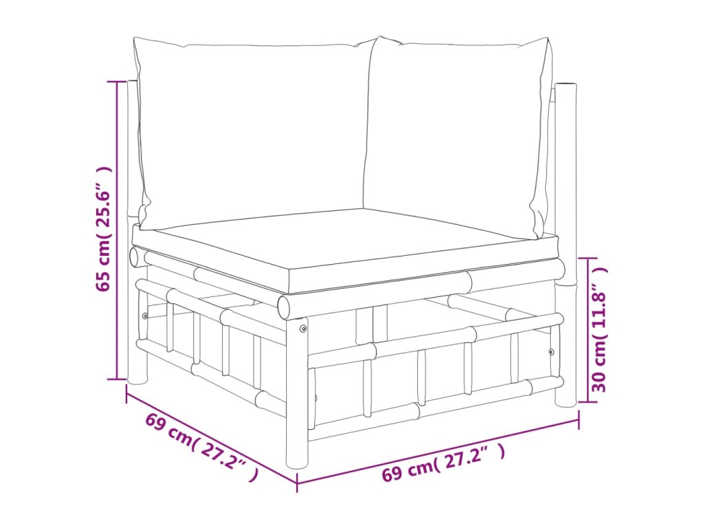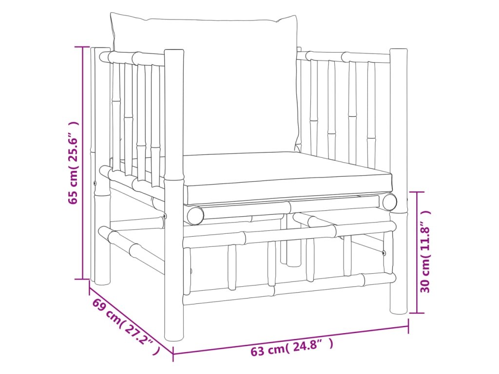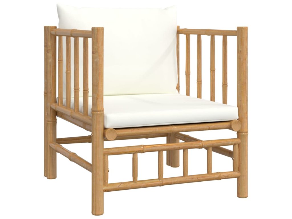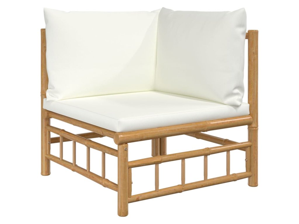 7-dielna záhradná sedacia súprava krémovobiele vankúše bambus 3155205