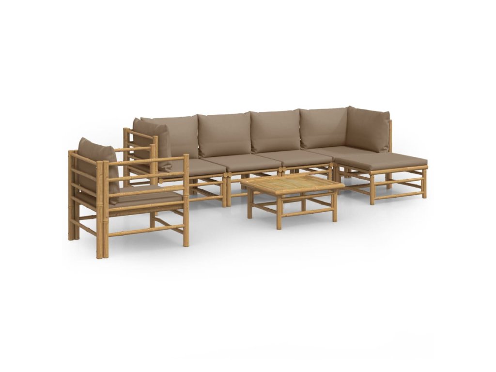 7-dielna záhradná sedacia súprava sivohnedé vankúše bambus 3155117
