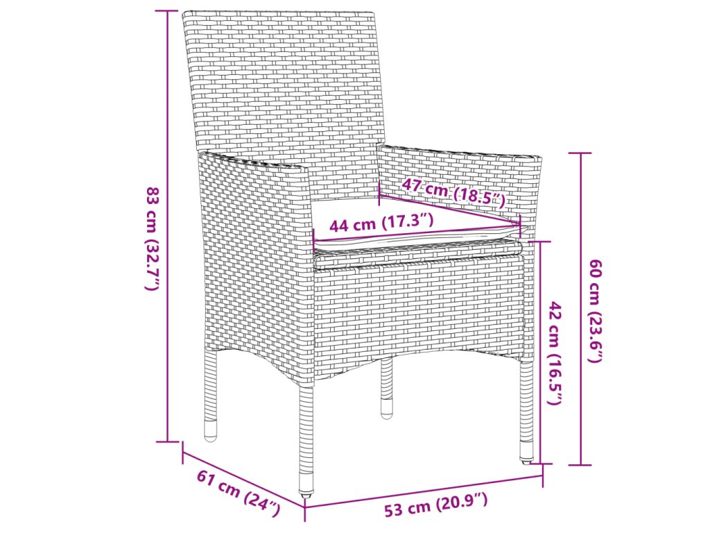 - Materiál: PE ratan, oceľ s práškovou povrchovou úpravou