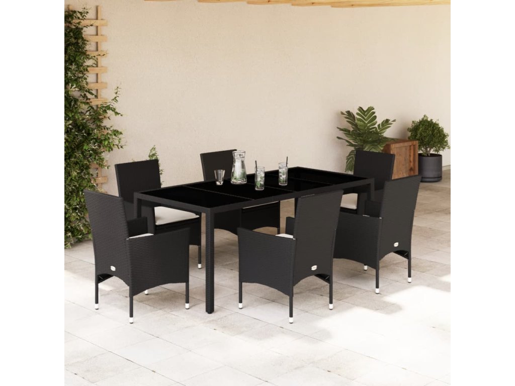 7-dielna záhradná súprava a vankúše polyratan a sklo 3278541