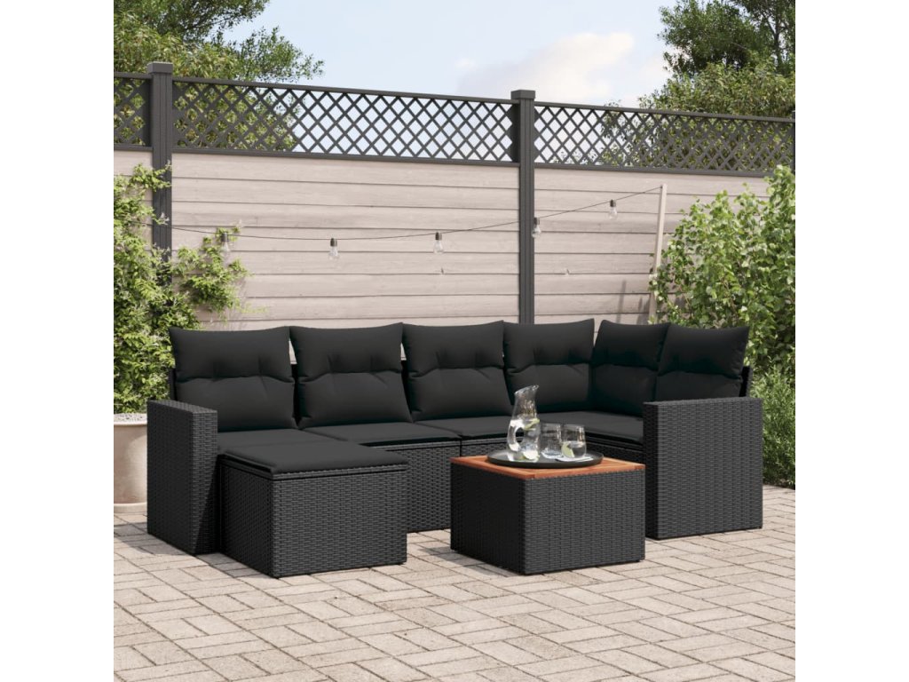7-dielna záhradná súprava pohoviek s vankúšmi čierna polyratan 3256552