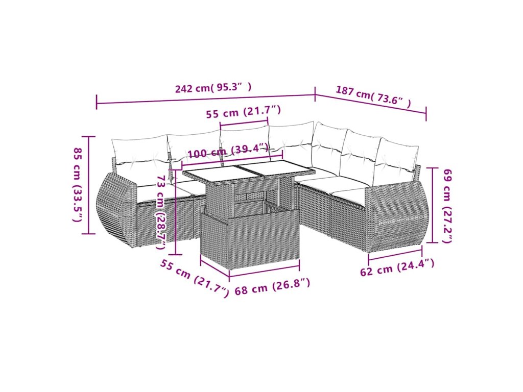 - Modulárny dizajn: Táto súprava vonkajšieho nábytku má modulárny dizajn, vďaka čomu je úplne flexibilná a ľahko sa premiestňuje, takže si svoj vonkajší nábytok budete môcť usporiadať podľa potreby.