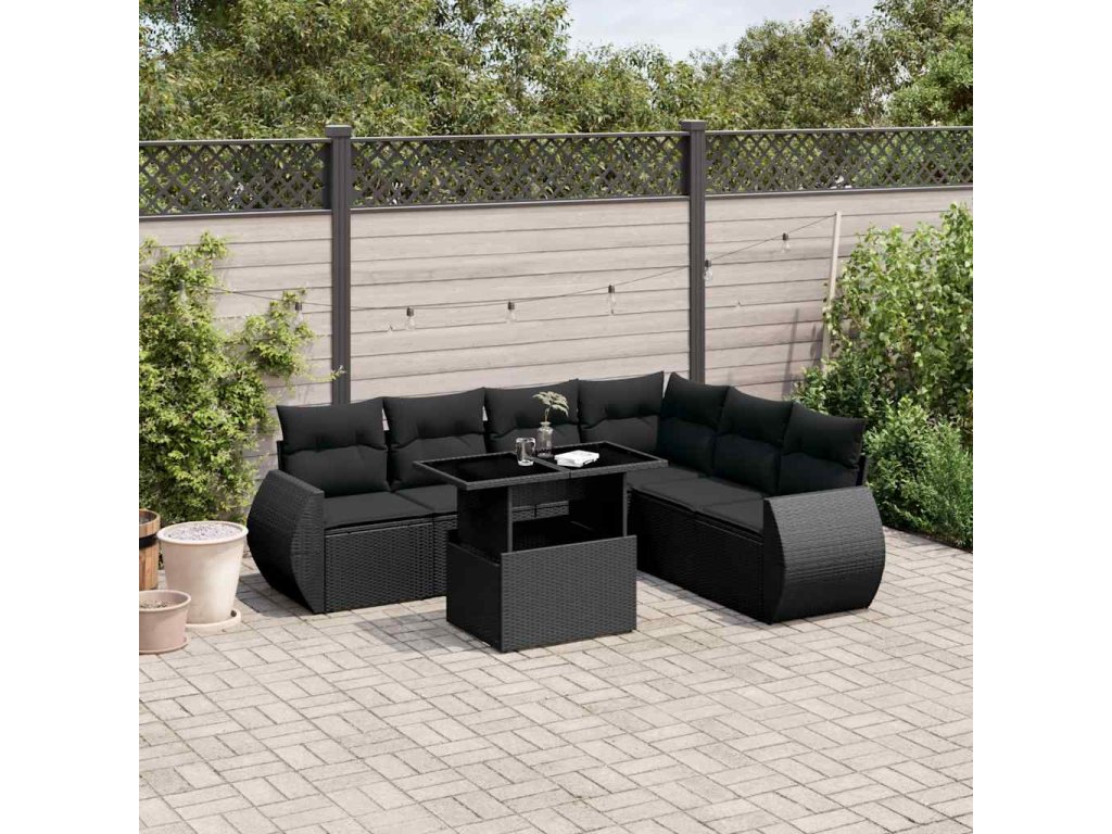 7-dielna záhradná súprava pohoviek s vankúšmi čierna polyratan 3268555