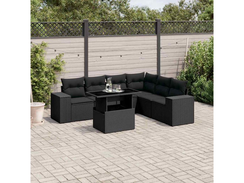 7-dielna záhradná súprava pohoviek s vankúšmi čierna polyratan 3269185
