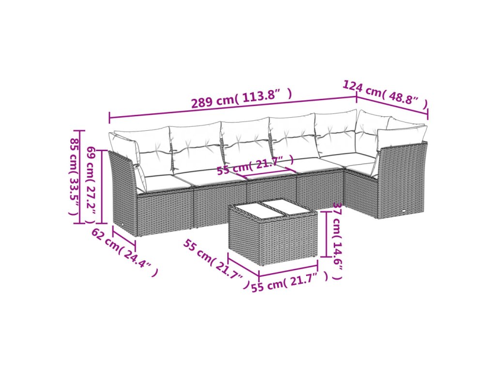 7-dielna záhradná súprava pohoviek s vankúšmi hnedá polyratan 3217673
