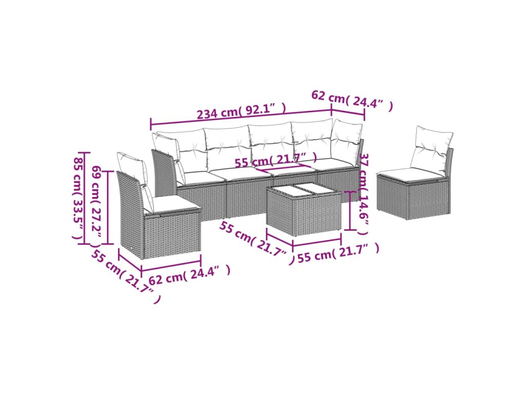 7-dielna záhradná súprava pohoviek s vankúšmi hnedá polyratan 3249222