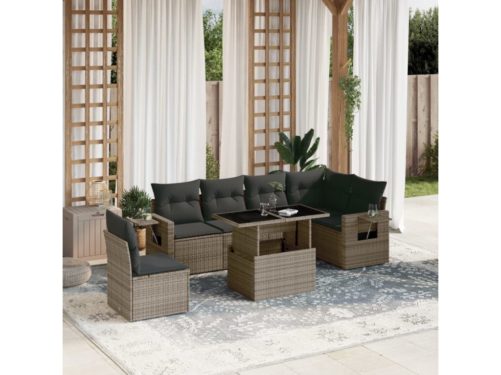 7-dielna záhradná súprava pohoviek s vankúšmi sivá polyratanová 3267940