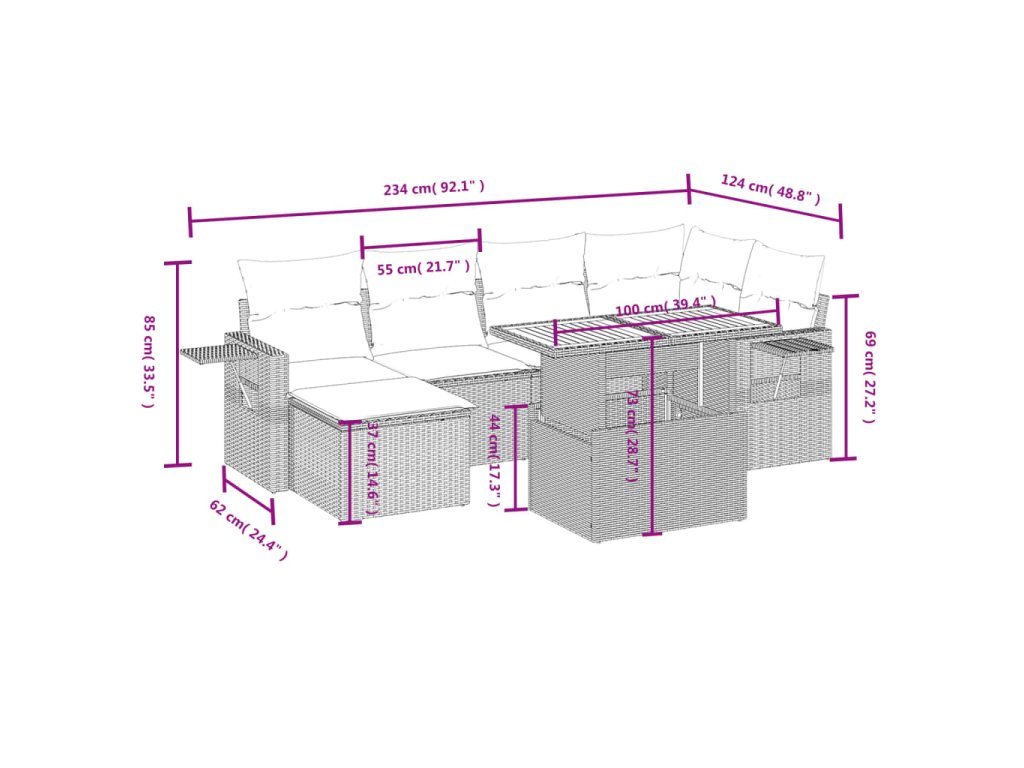 7-dielna záhradná súprava pohoviek s vankúšmi sivá polyratanová 3271858