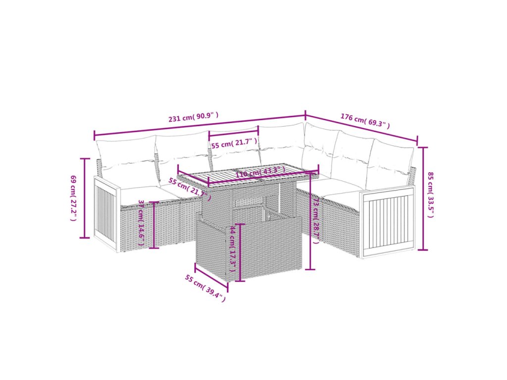 7-dielna záhradná súprava pohoviek s vankúšmi sivá polyratanová 3273979