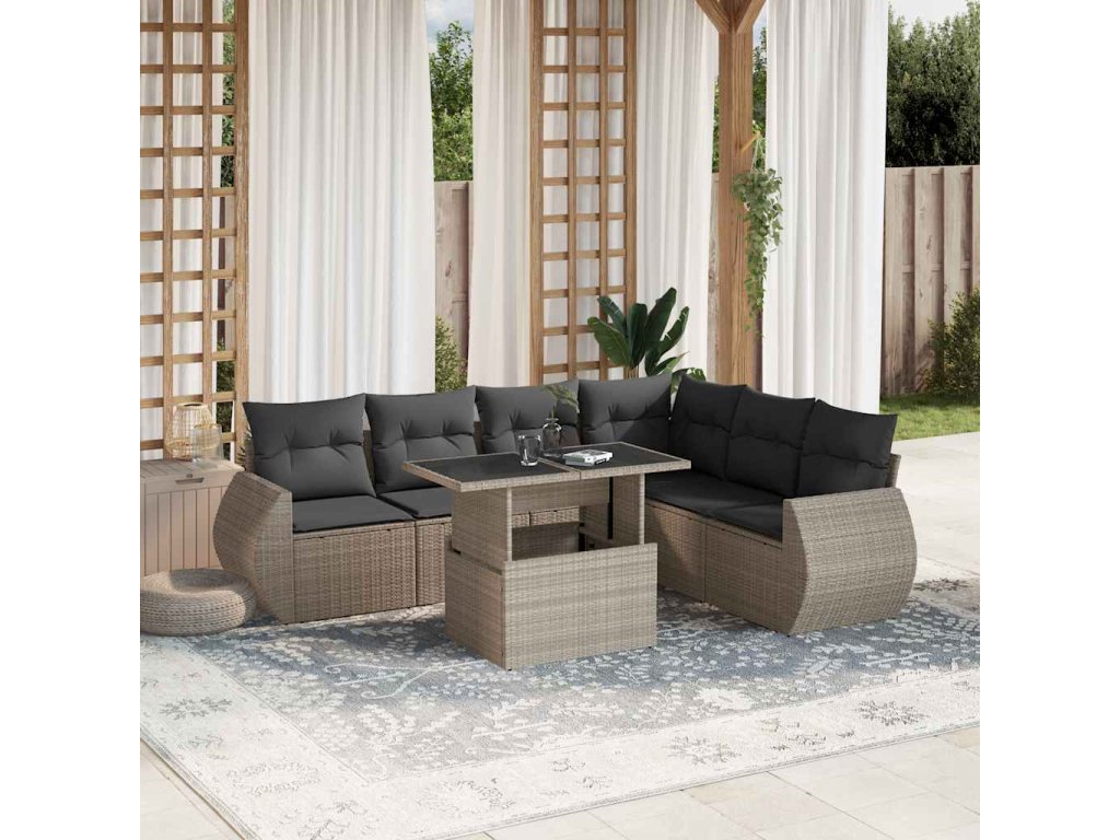 7-dielna záhradná súprava pohoviek s vankúšmi svetlosivá 3268562