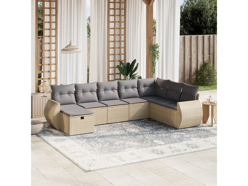 8-dielna záhr.sedacia súprava s vankúšmi mix béžovej polyratan 3264205