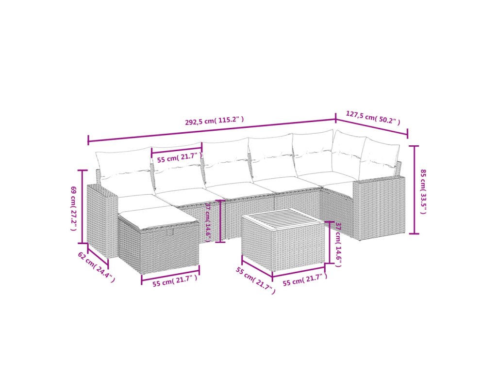 8-dielna záhr.sedacia súprava s vankúšmi mix béžovej polyratan 3264846