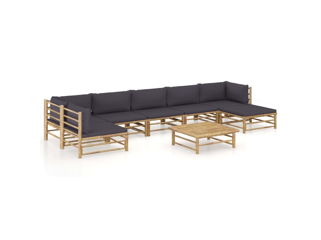 8-dielna záhradná sedacia súprava, tmavosivé podložky, bambus 3058250