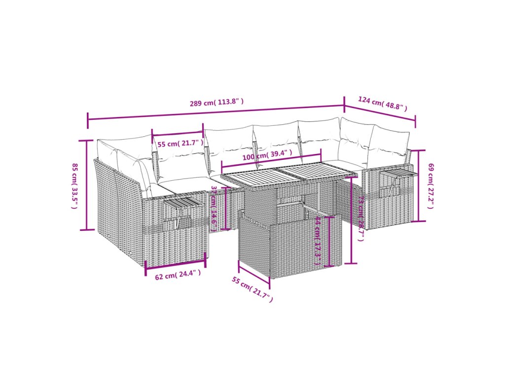 8-dielna záhradná sedacia súprava s podložkami polyratan čierna 3271665