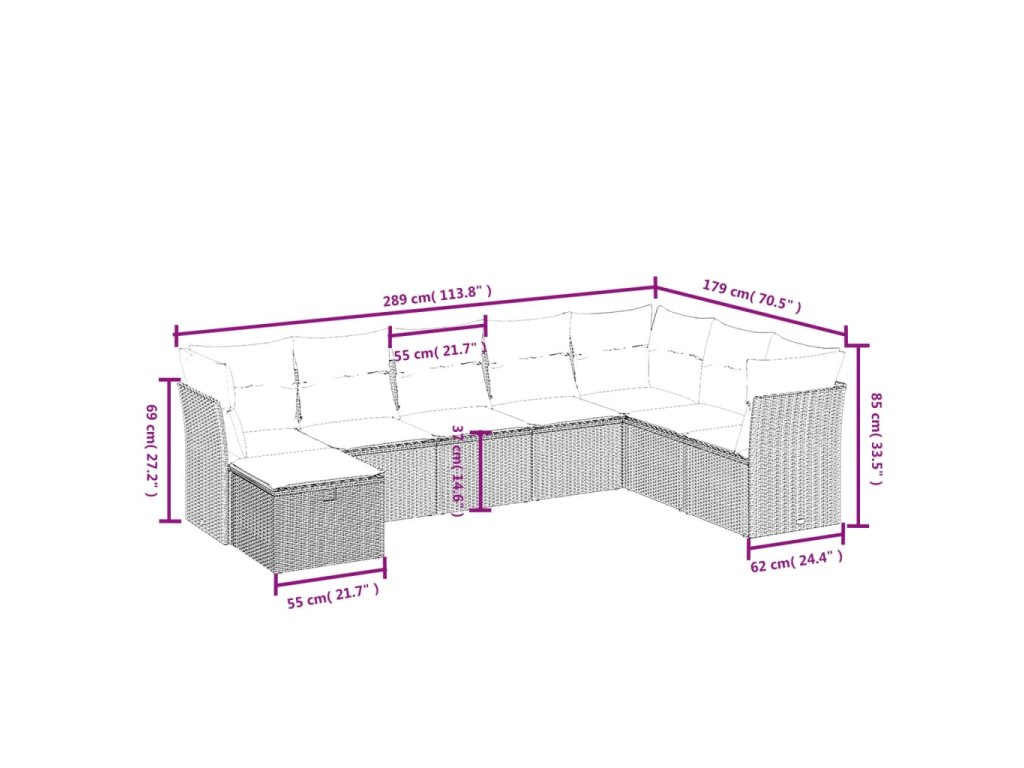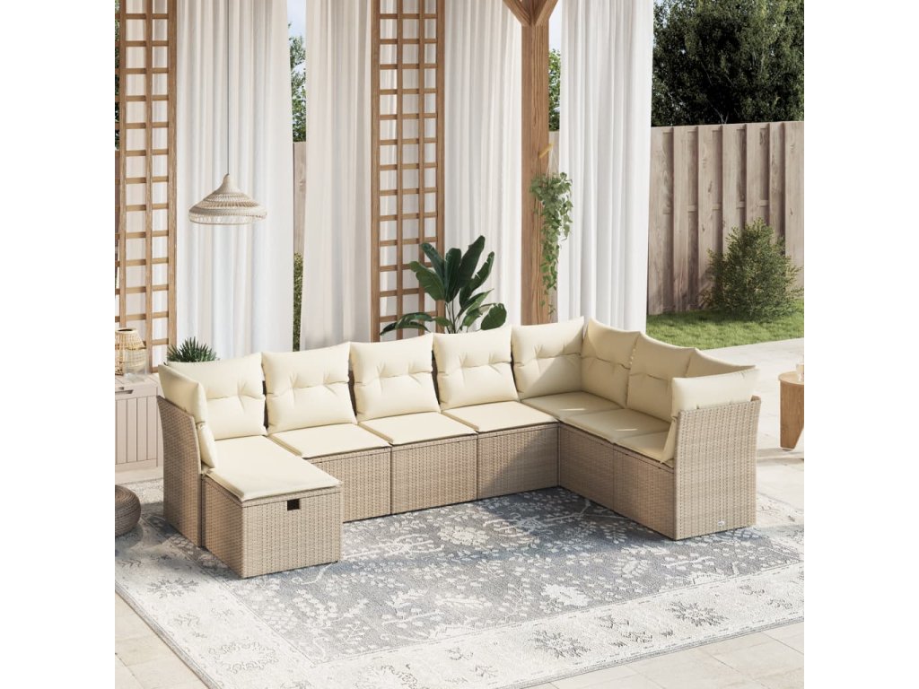 8-dielna záhradná súprava pohoviek s vankúšmi béžová polyratan 3263274