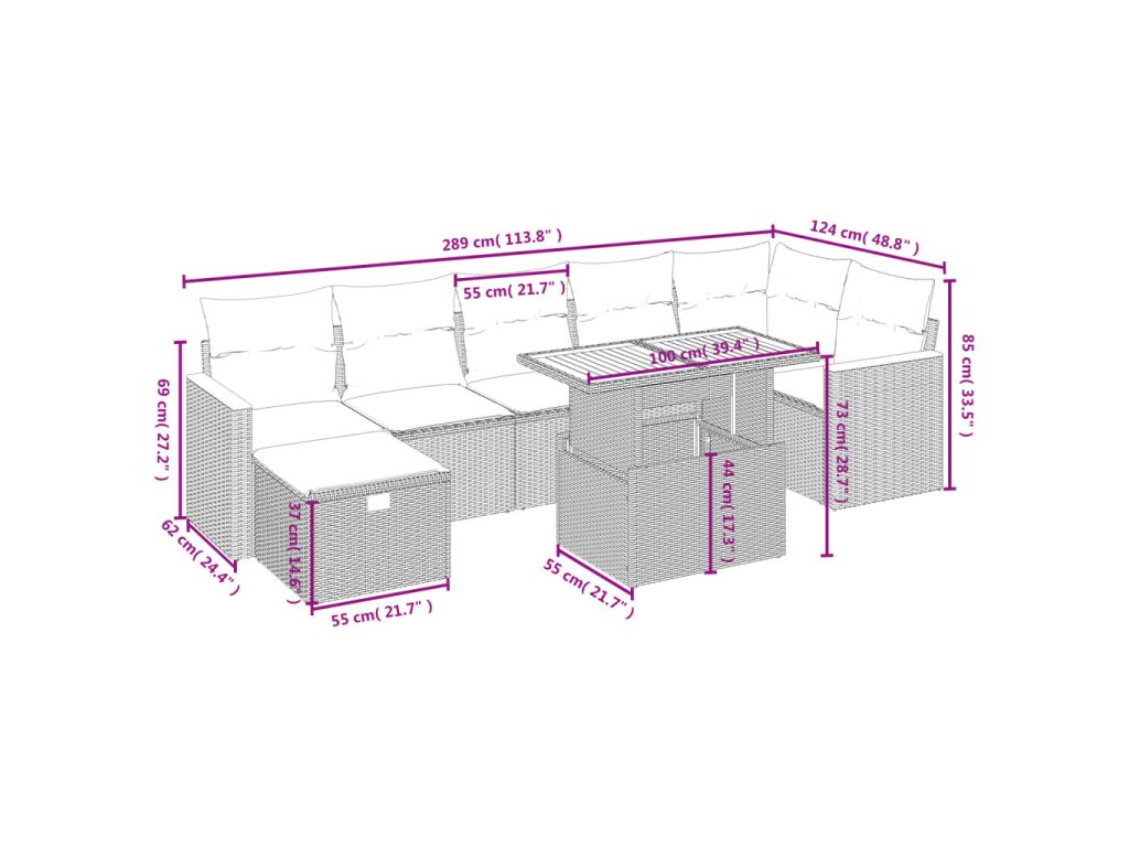 8-dielna záhradná súprava pohoviek s vankúšmi béžová polyratan 3276048