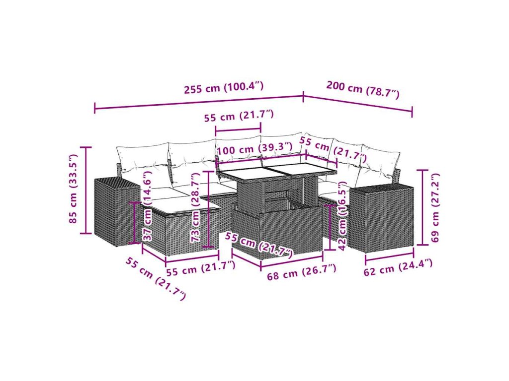 - Modulárny dizajn: Táto súprava vonkajšieho nábytku má modulárny dizajn, vďaka čomu je úplne flexibilná a ľahko sa premiestňuje, aby ste si mohli vonkajší nábytok usporiadať podľa svojich predstáv.