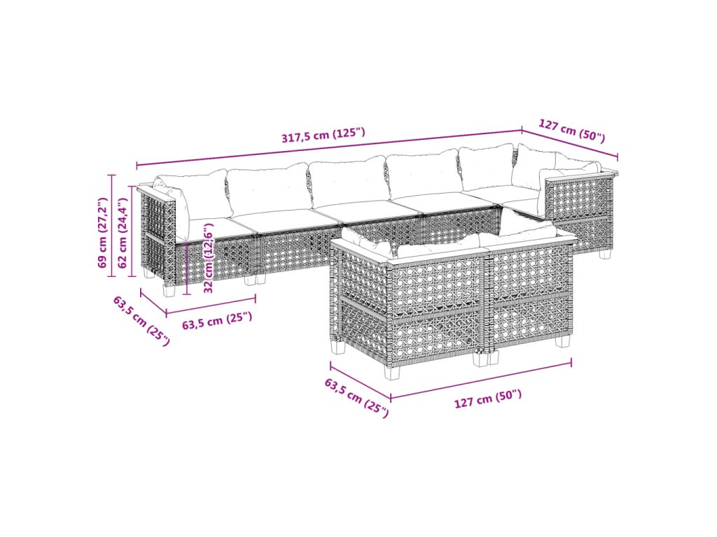 8-dielna záhradná súprava pohoviek s vankúšmi sivá polyratanová 3261891