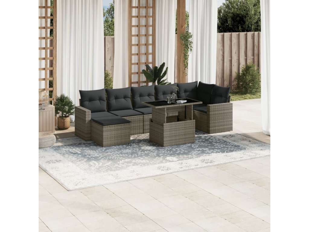 8-dielna záhradná súprava pohoviek s vankúšmi sivá polyratanová 3267430