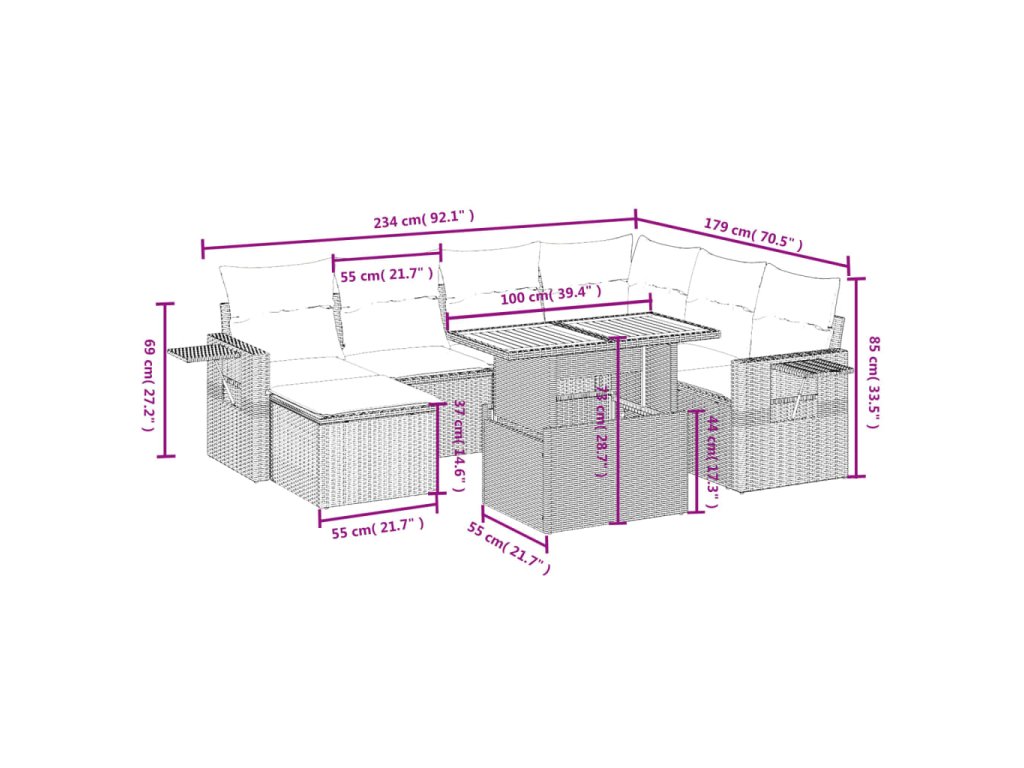 - Modulárny dizajn: Táto súprava vonkajšieho nábytku má modulárny dizajn, vďaka čomu je úplne flexibilná a ľahko sa premiestňuje, takže si môžete vytvoriť prispôsobené usporiadanie vonkajšieho nábytku.