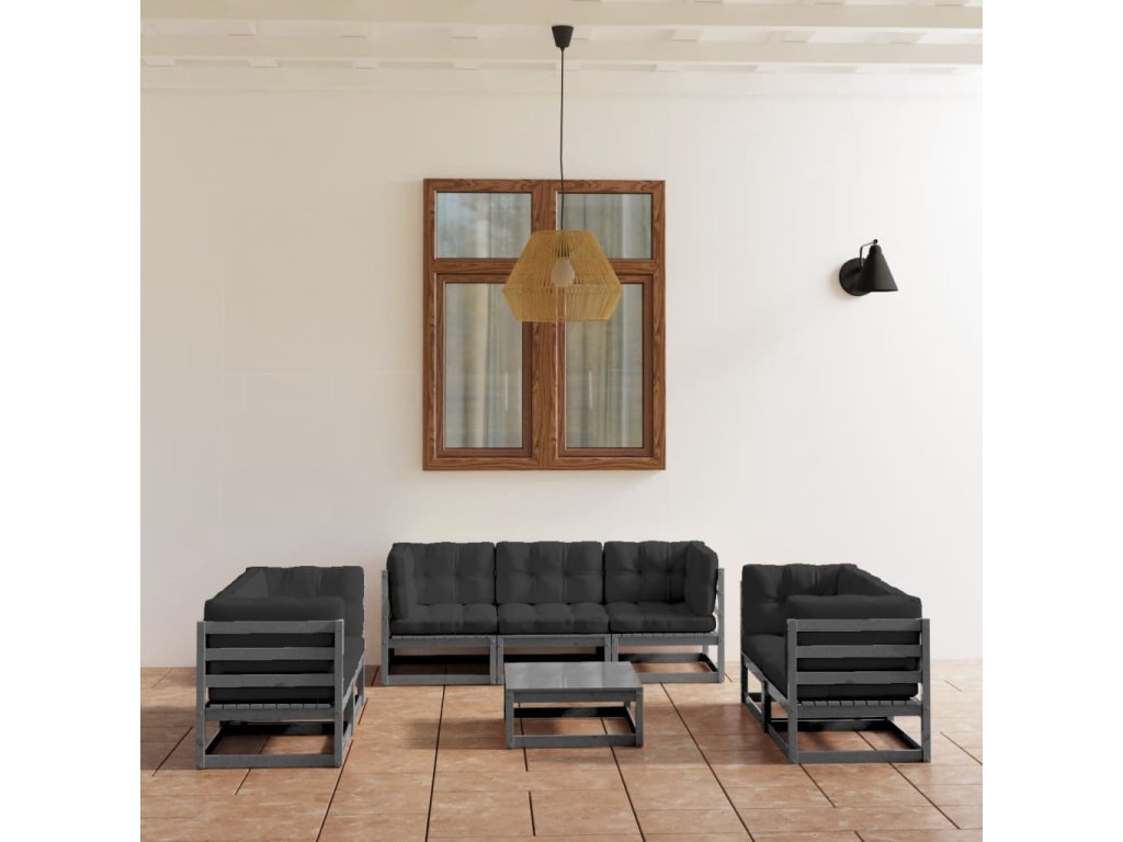 8-dielna záhradná súprava s podložkami borovicový masív 3076506