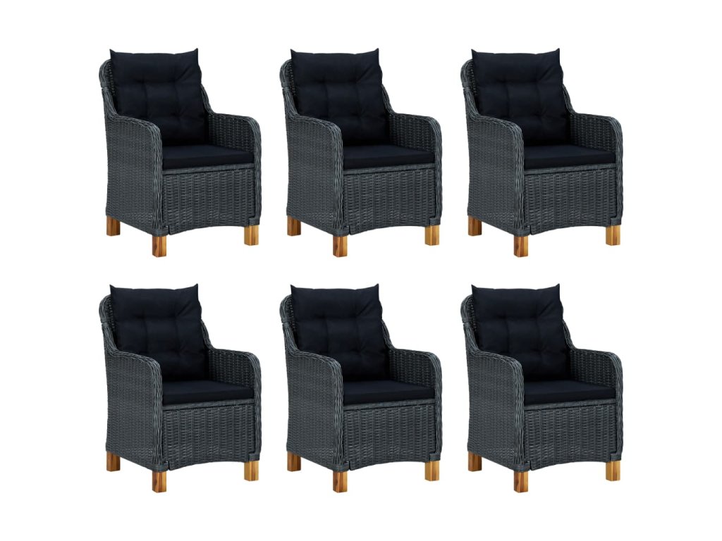 9-dielna vonkajšia jedálenská súprava s podložkami tmavosivá polyratan 3060185