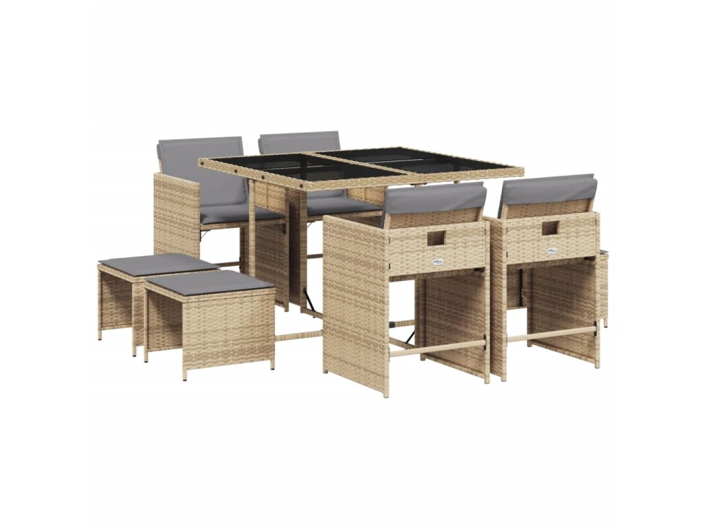9-dielna záhr. jedálenská sada s vankúšmi mix béžovej polyratan 3211140